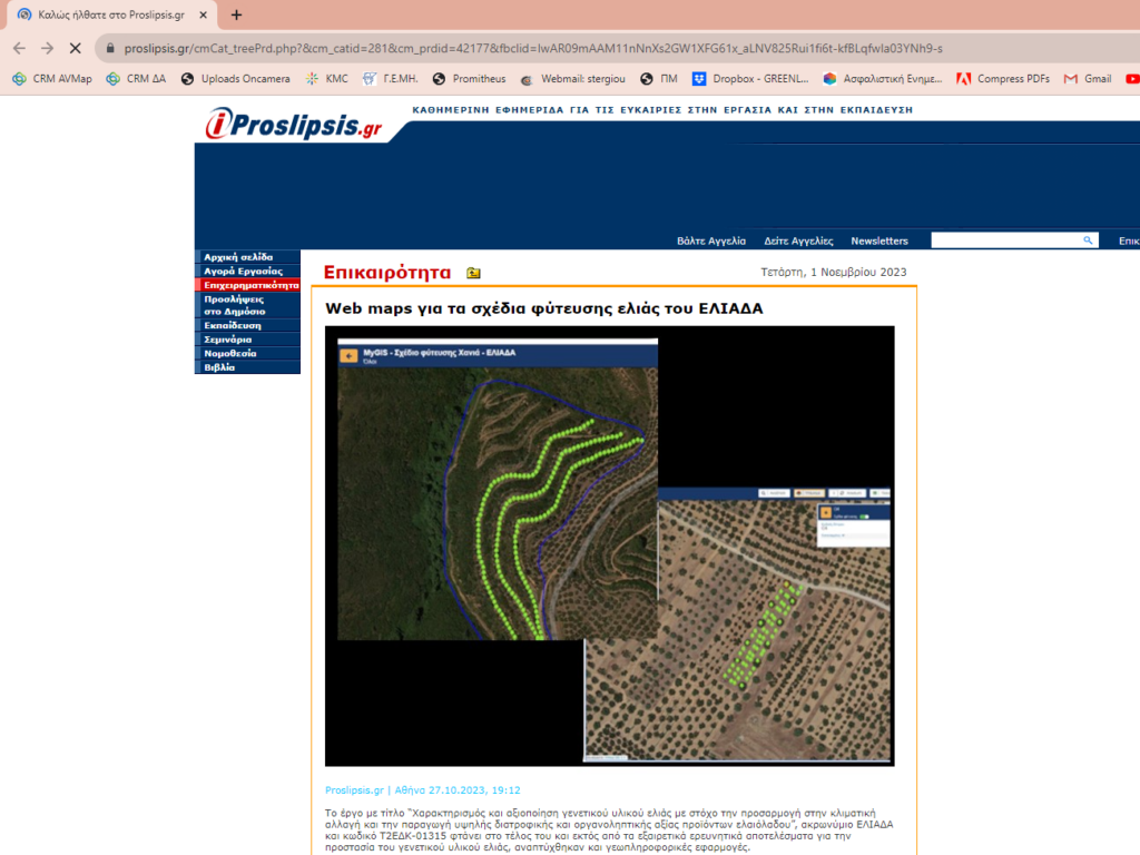 Web maps για τα σχέδια φύτευσης του EΛΙΑΔΑ